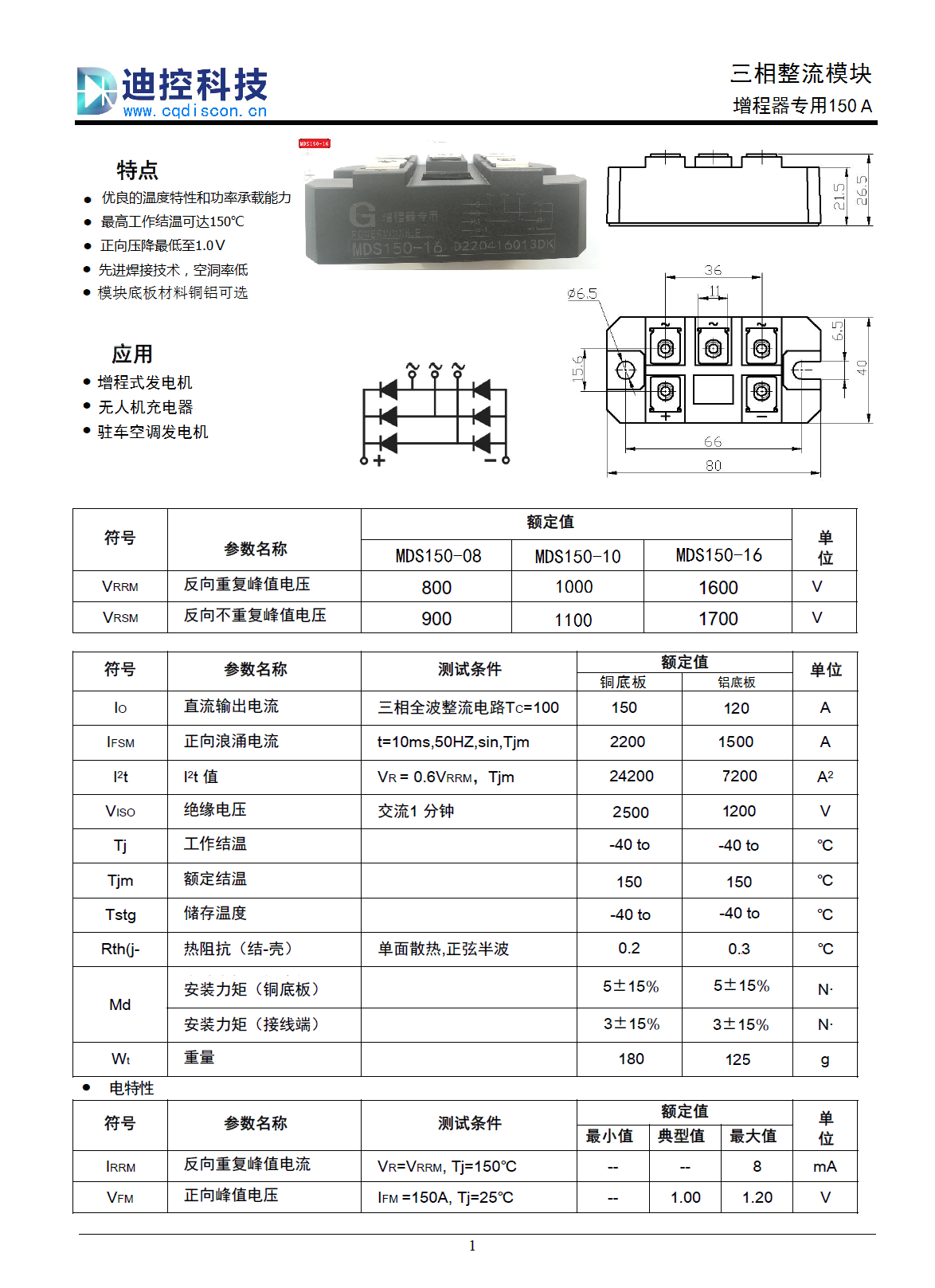 增程器专用整流桥
